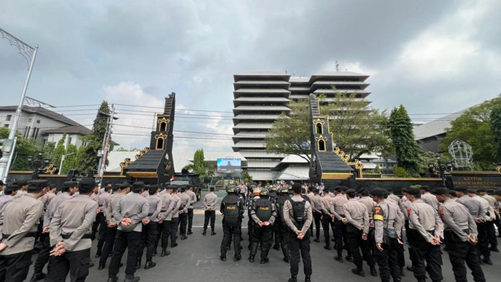Sebelum terjun ke lokasi, personel mengikuti apel kesiapan yang dipimpin oleh Kapolrestabes Semarang, Kombes M. Syahduddi, di halaman Kantor Gubernur Jateng pada Senin (20/10/2025) pukul 08.00 WIB.